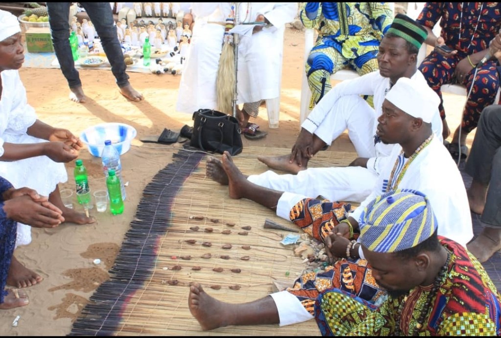 A noter que le signe majeur de cette consultation est : Goudafoun sur le cauris Tchewoli et sur la graine, lossoka. Ce signe Goudafoun relève essentiellement une instabilité financière qui pourrait néanmoins être conjurée par l’observance des préceptes édictées et la pratique des sacrifices révélés.