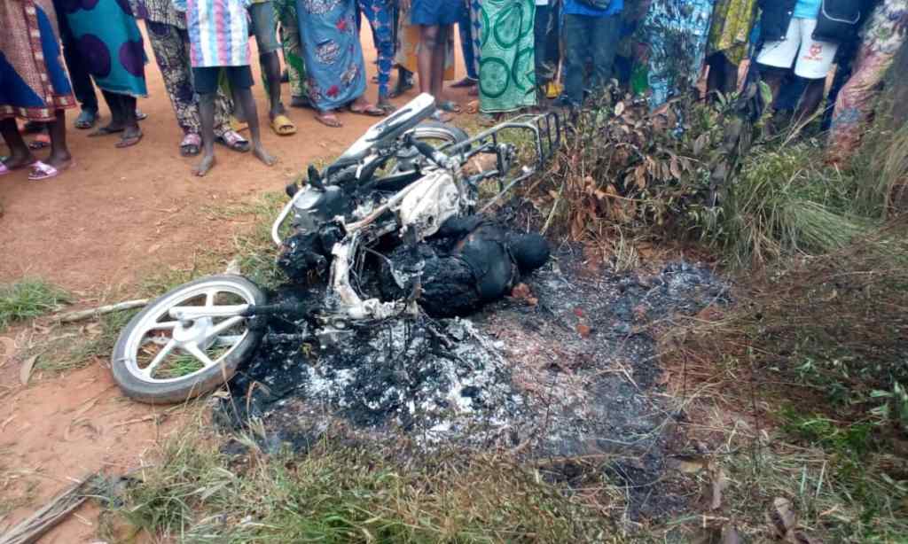 Tôt ce matin, les usagers de la voie publique qui commençaient à vaquer à leurs occupations quotidiennes ont eu la désagréable surprise de découvrir au niveau du petit carrefour contiguë du cimetière municipal un homme attaché à une moto et dont la dépouille était aux trois quarts calciné de même que sa monture.