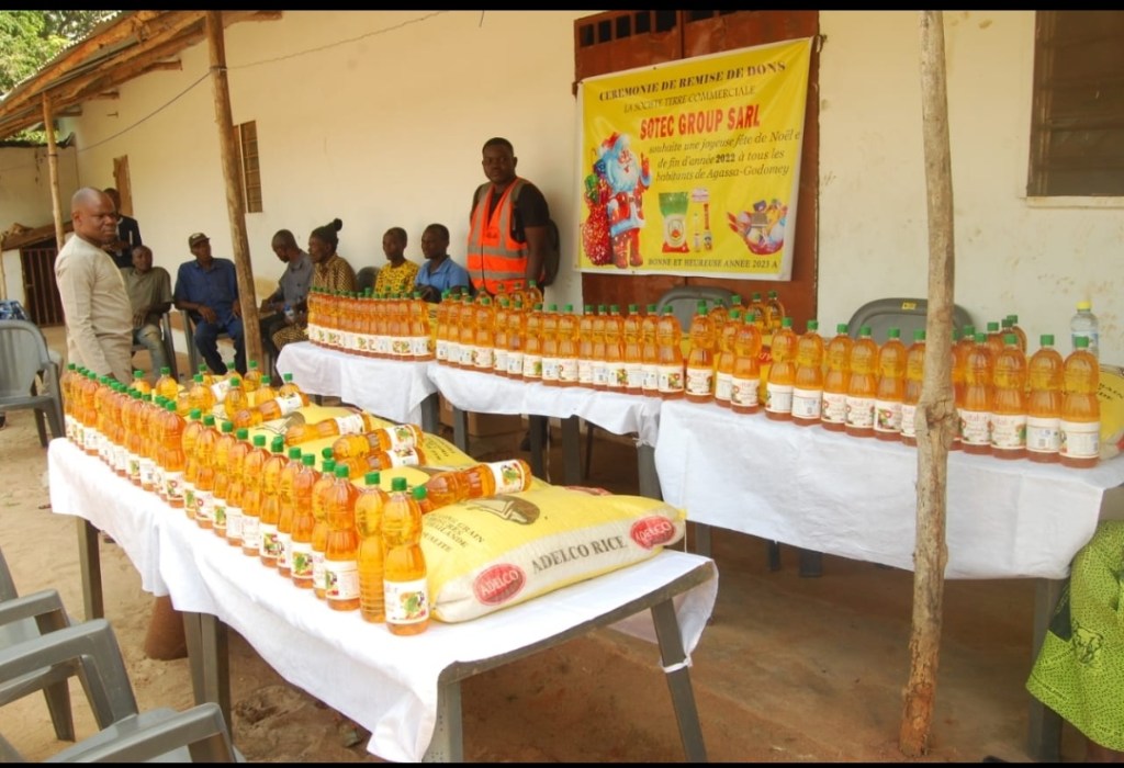 C’est dans un enthousiasme moulé dans un coffret de joie suivi des actions de grâce, que plus de 600 ménages dans la commune d’Abomey-calavi précisément ceux du village d’Agassa-godomey ont reçu des mains des responsables de SOTEC Group Sarl, des sacs de riz, bidons d’huiles et enveloppes financières en cette période de fin d’année.