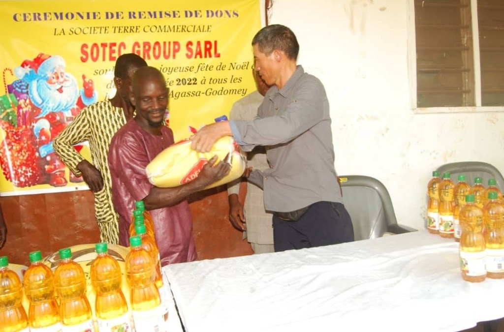 Toujours prête à faire parler son coeur, et porter assistance aux personnes en situation difficile, tel est le leitmotiv ayant animé la philanthrope chinoise Zong Beibei, Directrice de SOTEC Group SARL a donné la joie aux populations du village d’Agassa-Godomey dans la commune d’Abomey-calavi en cette période festive. Car pour elle, « nul n’a le droit d’être heureux tout seul …..» Zong Beibei.